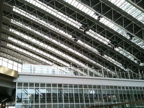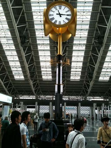 大阪といえばなんと言ってよいか、 懐かしい反面、大変だった記憶がよみがえってきます。 今回は、仕事半分遊び半分らしく、 スーツを着ての移動となりました。 日本橋は相変わらず 汚い というか、 ゴミが道に平気で落ちていたり、 川に浮いていたりと、 目を覆いたくなるばかりです。 でもそれが大阪らしい。 梅田スカイビル 梅田にあるこのビル、 凱旋門みたいなたたずまいをしていて、 天井がこのように吹き抜けになっています。 今回初めて屋上に上り、景色を楽しみました。 2年前、自分が住んでいたころ、 大阪駅は大規模な工事中でした。 大阪ステーションシティ という駅とショッピングモールが一緒になった、 最新鋭の商業施設ができあがっていました。 上の写真、 なんかどこかのヨーロッパの駅を思い起こさせるできあがりです。 「時の広場」 と呼ばれる所にあるこの時計堂、 上部は本当の金箔でできているようです。 大阪駅のあらたな名物になりそう。 度肝を抜かれたのがこの時計ディスプレイ! なんと水を使った時計ディスプレイなのです。 上の写真をみたら分かるんですが、 上から水が落ちてきて、「GATE」という文字を映し出しています。 水の出すタイミングをコンピューター制御することで可能になったとのこと。 マイナスイオンもでているのかすっきりした感覚がありました。 テクノロジーがこういう形で楽しまれるのは 本当に良いことだと思います。 すごい!