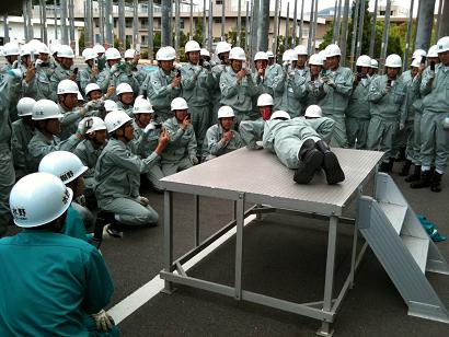 作業といっても基本的なことばかりなのですが、 何が大変ってこの 暑さ! 本当にどうにかならないのか! と思ってしまいます。 研修所といっても 研修すればいいというものではなく、 集団でどのようにすれば効率よく生活ができるのか ということもあわせて勉強しています。 日ごろのスケジュールは 6;30 起床 7;20 朝食 7;50 研修場へ入る 8;50 研修開始 12;00 昼食 13;00 午後研修開始 19;00 研修終了 19;10 夕食 20;00 日誌を書く 21;30 全体会議 22;00 班会議 23;00 消灯 24;00 暗闇の中で読書 となっています。なんだこの過密スケジュールは! と思われるかもしれませんが、皆さん まじめさん ばっかりなので、疑問も持たず従順にこなしています。 勉強させてもらってお金をもらっているので 文句はいえませんが、 ここまで過密だと、逆に人間 考えなくなってしまうのではないか? と思います。 以下の写真は腕立てをして体を鍛えようというイベントで、 一人だけ集団リンチ的に無制限でやらされているところです笑 院まで出て、腕立てを毎日やるとは思いませんでしたが、 たまにはいいかと思いながら生活をしている次第です。